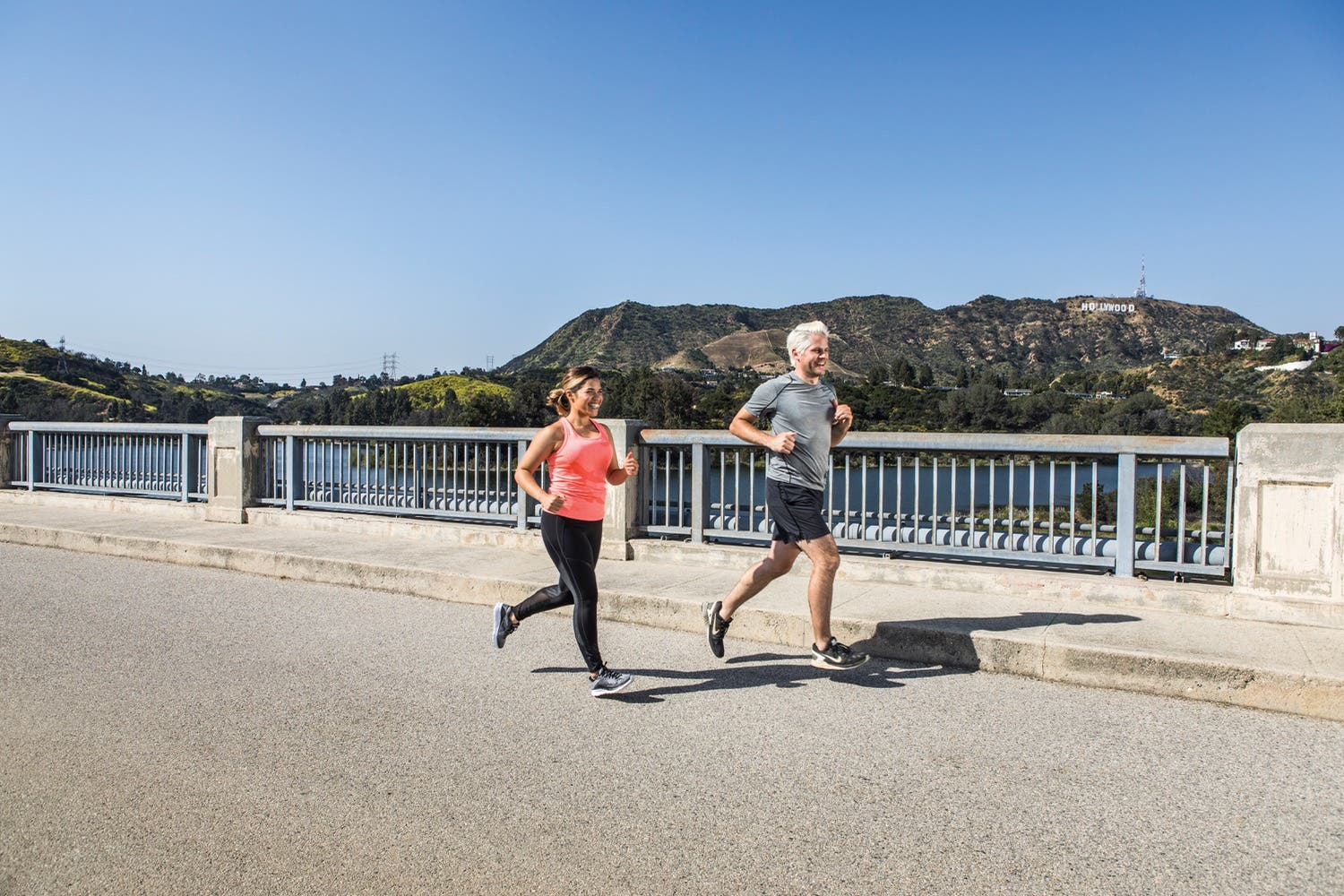 America danced, skipped, jumped, joked and laughed on the set of her Triathlete photo shoot. First in a Hollywood studio where we recreated the post-race party look we like to call Glam Triathlete, then at the Hollywood Reservoir, a hidden gem of an outdoor escape in the hills just below the Hollywood sign, where she and Ryan (#TeamFerrilliams) often train.