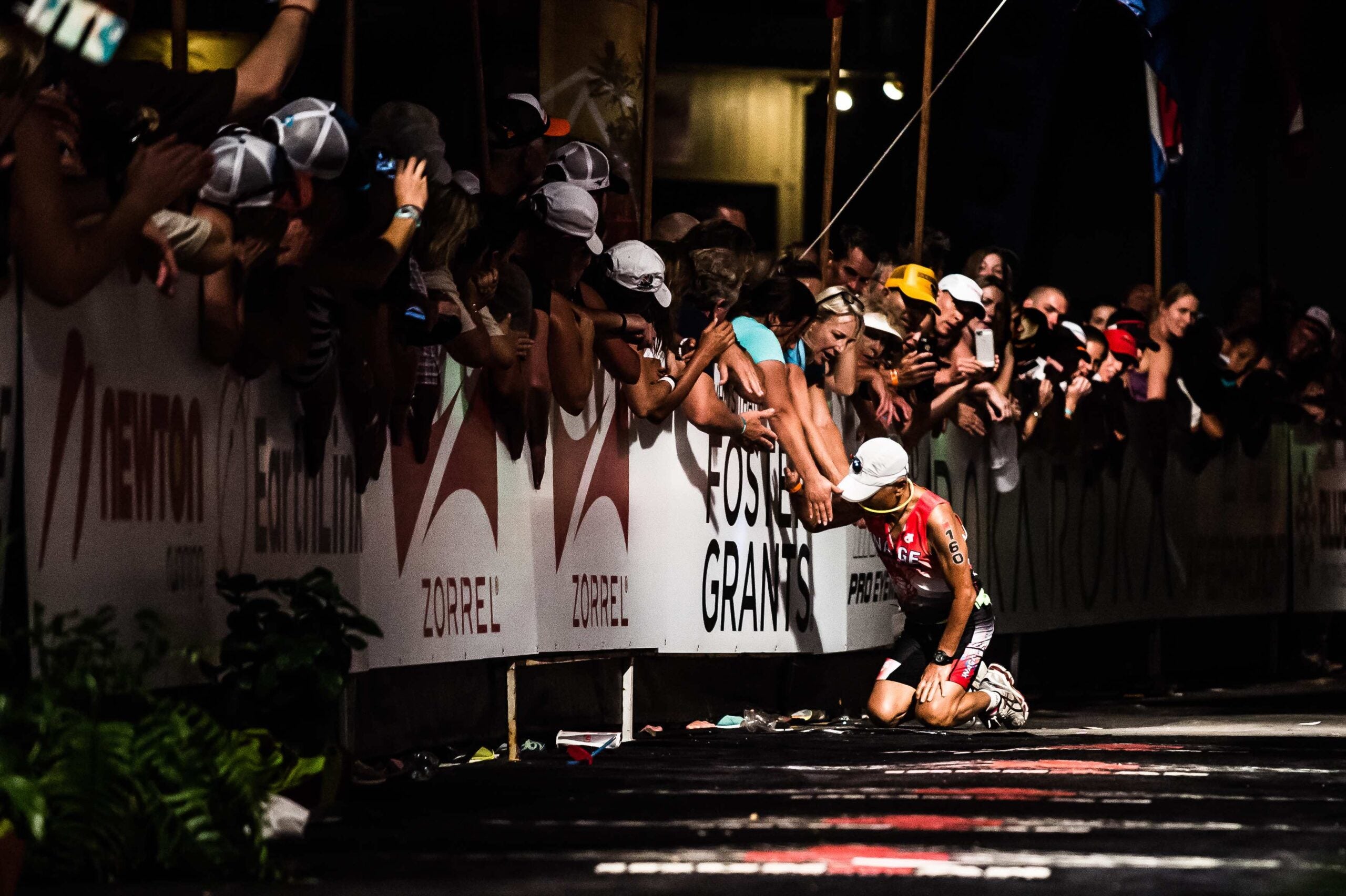 Inada, overcome by exhaustion, did his best to get there. But then his body gave out, and he collapsed to his knees. He got up, only to fall again. Photographer Nils Nilsen happened to be standing just a couple of feet away at that very moment, and trained his camera on Inada. The result? One of the most iconic images ever taken at the Ironman World Championships.