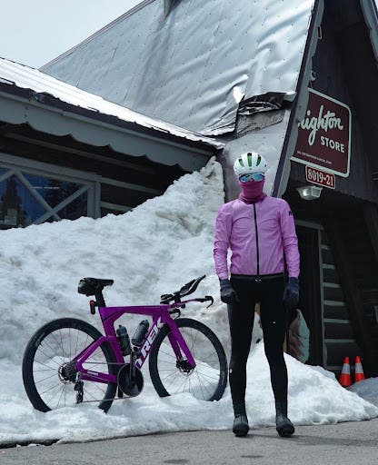 Big Cottonwood Canyon is a stunning and challenging ride through the foothills of Salt Lake City. After reaching the top of the canyon, treat yourself to a refill at the Brighton Store – or in pro Skye Moench’s case, a warm coffee and standing under the heater inside.