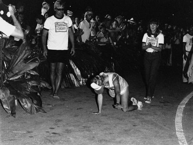 And when you do turn right on Ali’i Drive, as you head towards the pier, you know that right along that stretch of pavement is where Julie Moss collapsed and ended up crawling to the finish after being passed for the win by Kathleen McCartney in February of 1982.