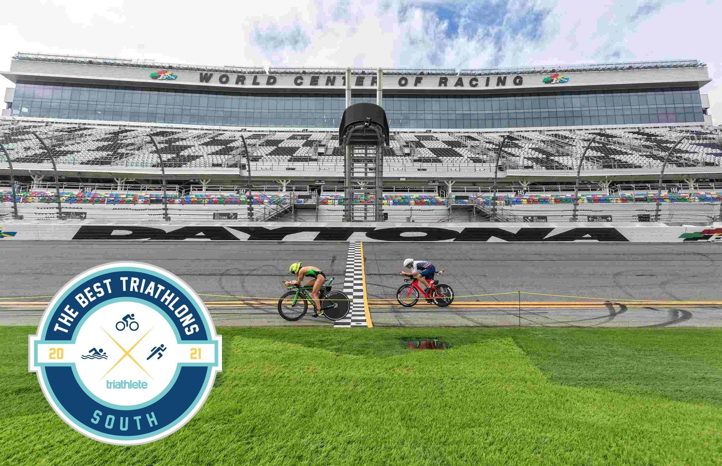 I’ll admit I have a soft spot for this race. I was there the inaugural year when it was still Challenge Daytona and was supposed to be just another regular middle-distance event. Then a storm blew in (people have heard this story), and as the pros sat around the green room all day waiting, snacking, and changing our minds about warming up on the treadmills, Andrew Starykowicz proposed a new course entirely inside the racetrack, campaigned among the athletes, and put it to a vote. And thus the racetrack-style “Daytona distance” was born. They’ve fine-tuned the race and style since, added lights and cameras, and expanded their series. While the age-groupers do leave the racetrack for much of the bike, there’s nothing like getting to race (and RV, if you want) inside a NASCAR stadium. It’s one of the more unique and odd triathlons you’ll do. Pro tip, though: I almost didn’t bring a wetsuit—a man-made pond inside a stadium in Florida will be warm, right?—but don’t be that stupid, you definitely want to bring a wetsuit.