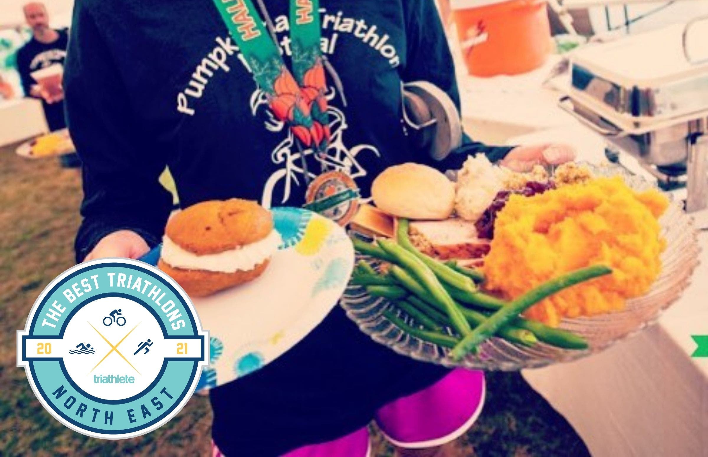If you’re the kind of triathlete who races to eat, then the Pumpkinman Triathlon is sure to be your finest day in tri. The race itself is a stunner – a sprint or Olympic through the pretty fall foliage in the backwoods of Maine, cheered on by happy locals who emerge from their homes with a coffee mug in one hand and a cowbell in the other. But the real beauty is at the finish line, where athletes are greeted with what is undeniably the best post-race food in the sport. It’s a full-on brunch, flush with breakfast burritos, pancakes, yogurt parfaits, and even desserts. And, of course, what would brunch be without Bloody Marys and mimosas? Yes, they have those, too.