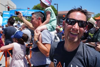 We’re less than five minutes into the final stage of the Tour of California, a 77.6-mile ride from the ski hill of Mountain High, located a few hours northeast of Los Angeles, to Pasadena. Wohlberg is the men’s team director for Rally Cycling, one of 17 teams of eight men competing in the race. He’s compact and fit as hell and I can’t believe he’s 52. Wohlberg’s driving the team car, I’m in the passenger seat, and Erik-with-a-k Maresjo, the team’s ace mechanic, is behind me with his toolbox and a cooler full of bottles.