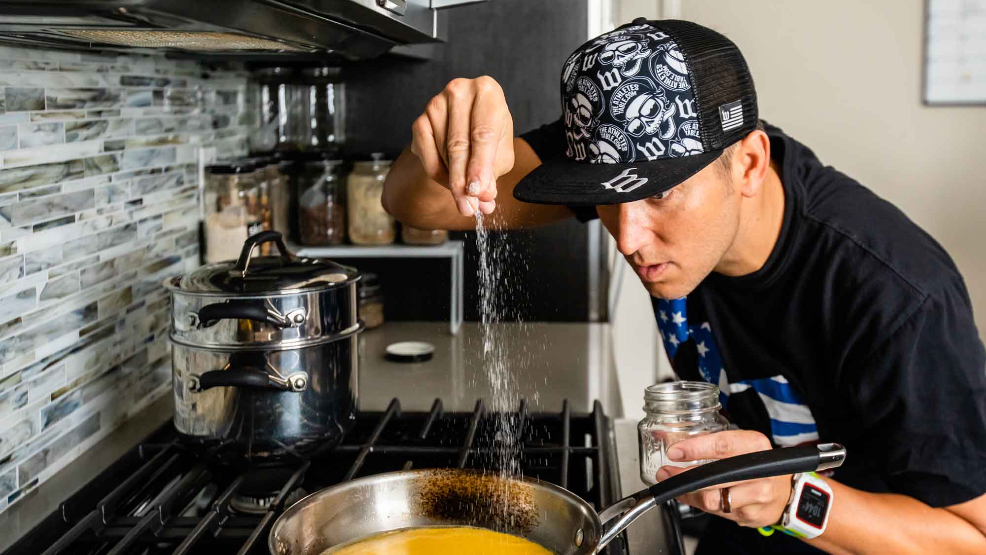 The Athlete’s Table is Vinten’s personal-chef business, where he whips up recipes to fuel an active lifestyle. Vinten mostly cooks for small bespoke training camps, including those offered by training groups like Wattie Ink and Endurance Camps. He shares those athlete-inspired recipes on his website, where he’s established a sizable following of individuals who, like Vinten, love to eat just as much as they love to train. He sees his work as an opportunity to show time-crunched triathletes that healthy eating is well within reach. If anyone knows this, it’s Vinten—over the course of a day, he is a chef, entrepreneur, father of two young children, husband, and triathlete-in-training.
