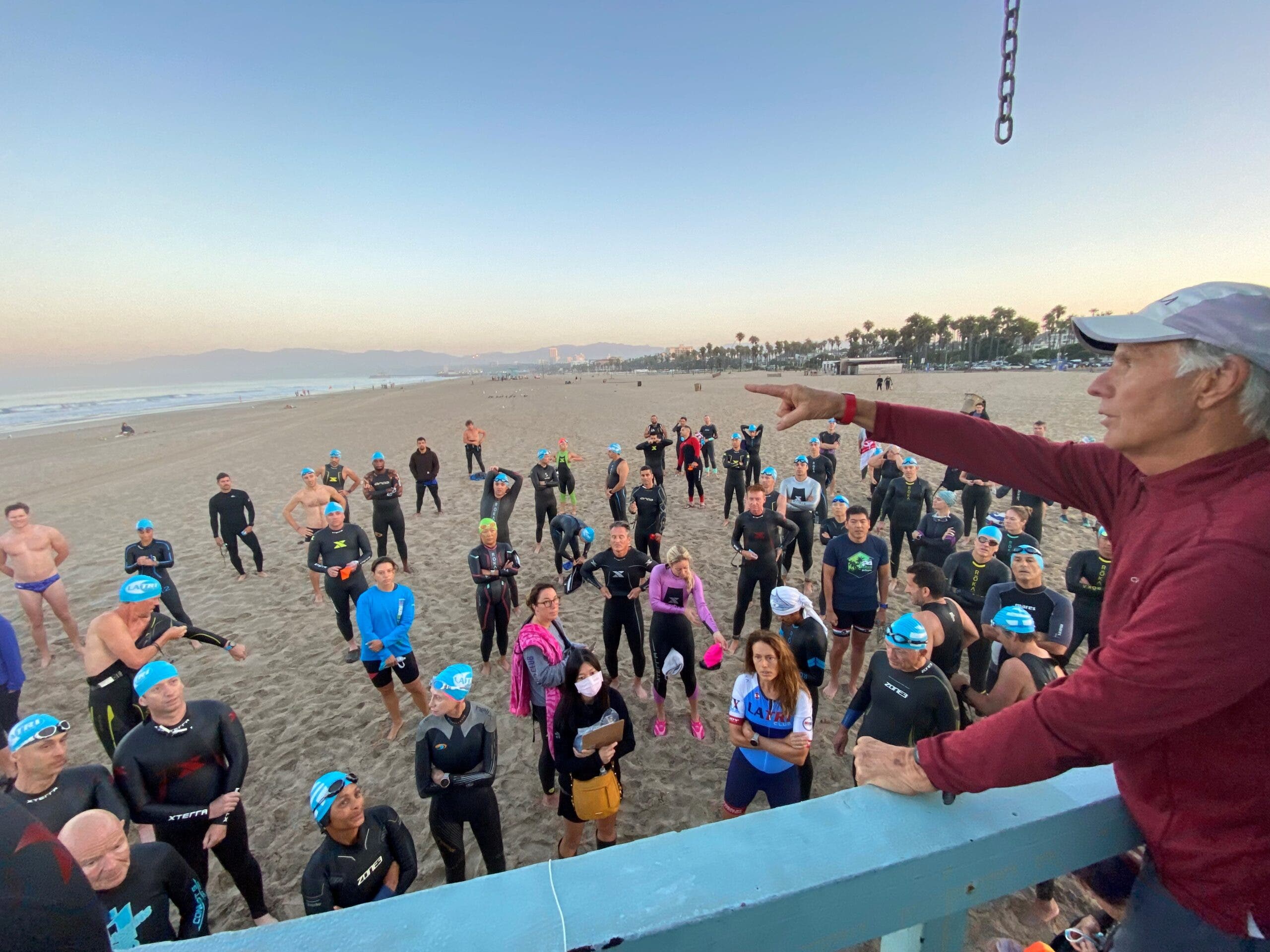 The LA Triathlon Club gathers for an open-water swim practice. (Photo: LA Tri Club)