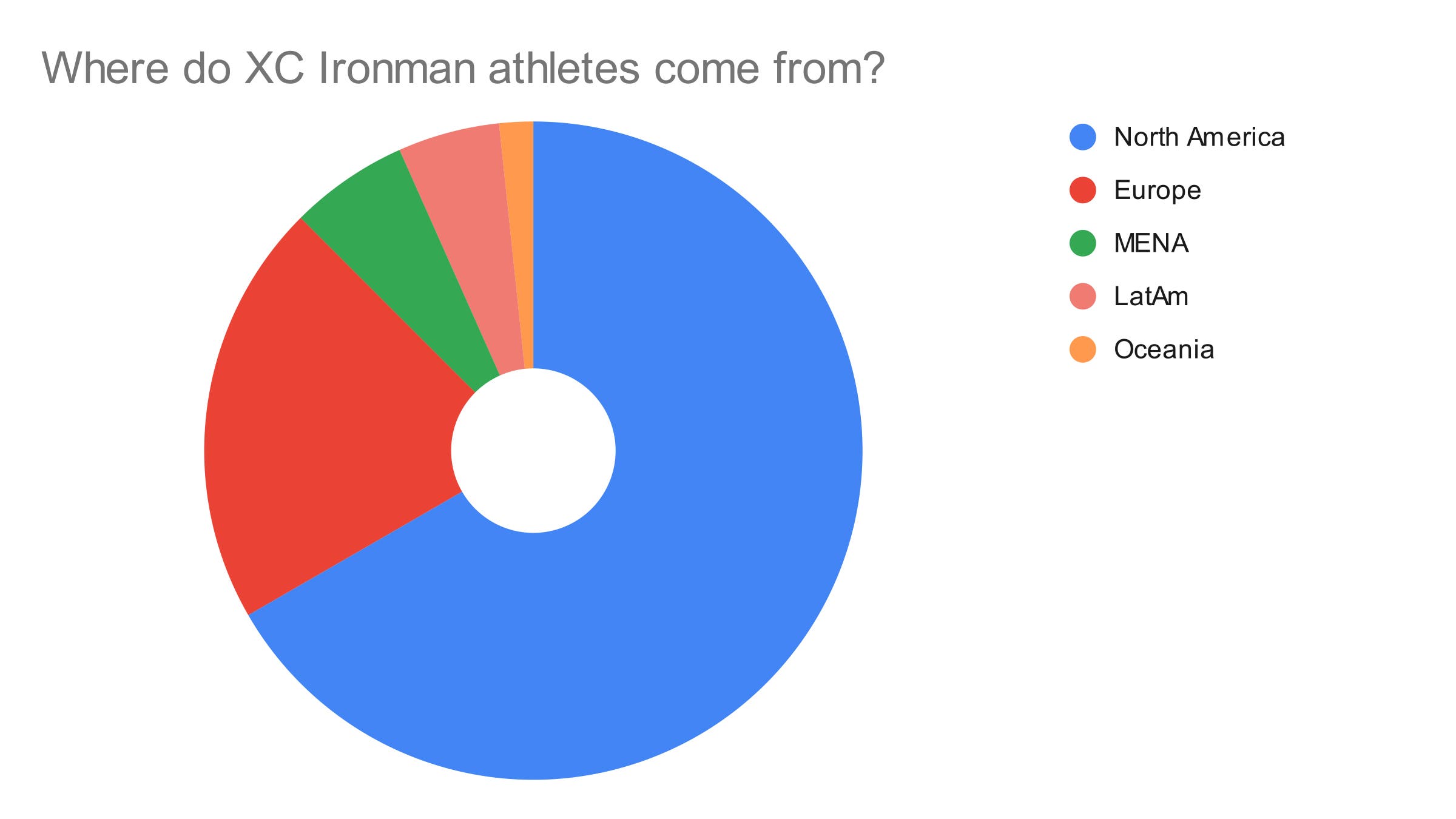 As for the geographic distribution, the overwhelming majority of triathletes were from North America (66%), followed by the Europeans (21%). It’s unclear if this is because most of the races were located in North America, or if the selected races were in North America because XC attracts mostly a North American crowd. Chicken or the egg, for sure.
