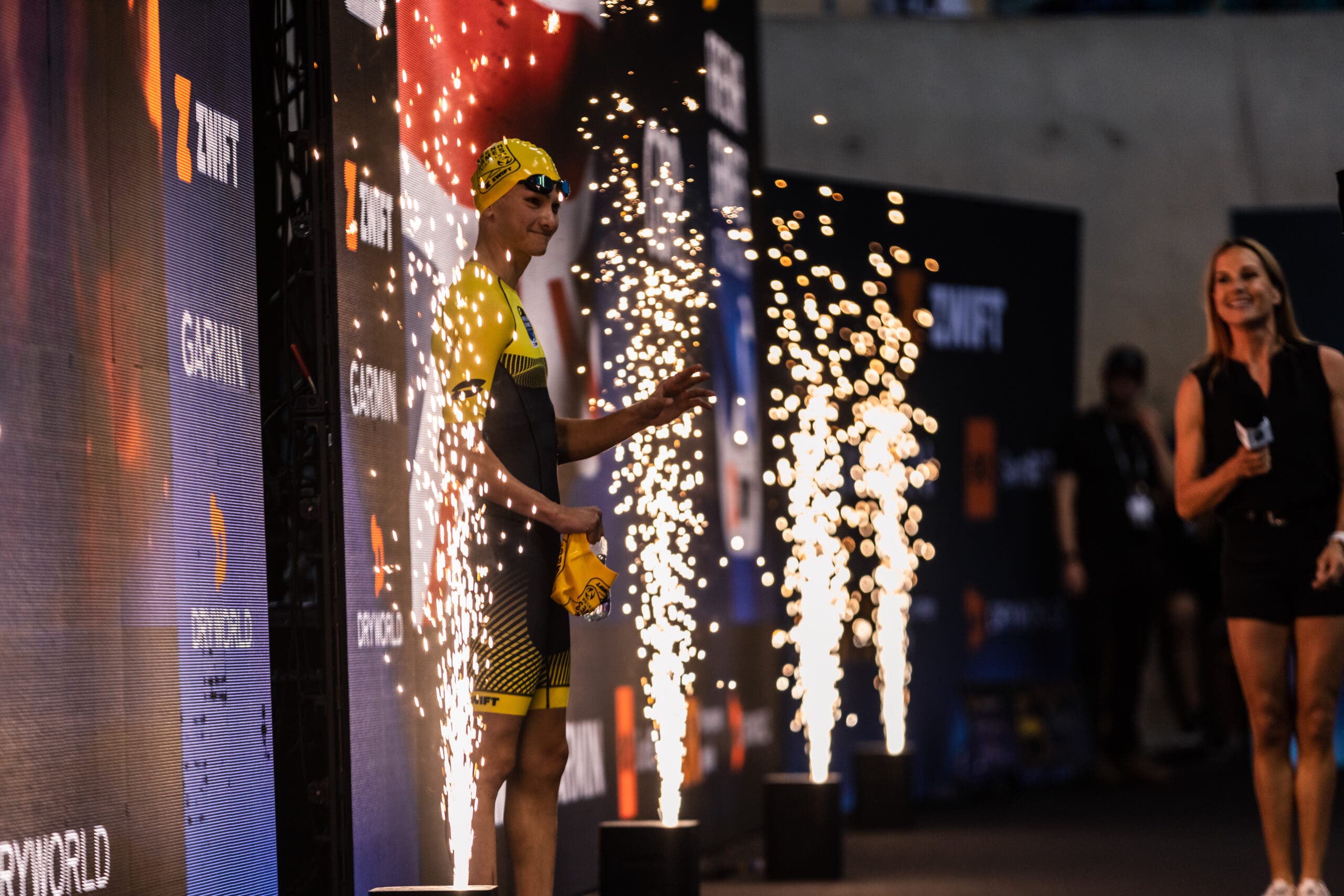 “We’ll continue to grow the show element of it,” D’hulst said. “We put an athlete in a pink uniform, and it’s a pink athlete in real life, pink athlete in the virtual world, and pink numbers on the screen, so the crowd understands the relationship. The aspiration is to make triathlon more of a spectator sport. We can’t assume everybody knows every name.