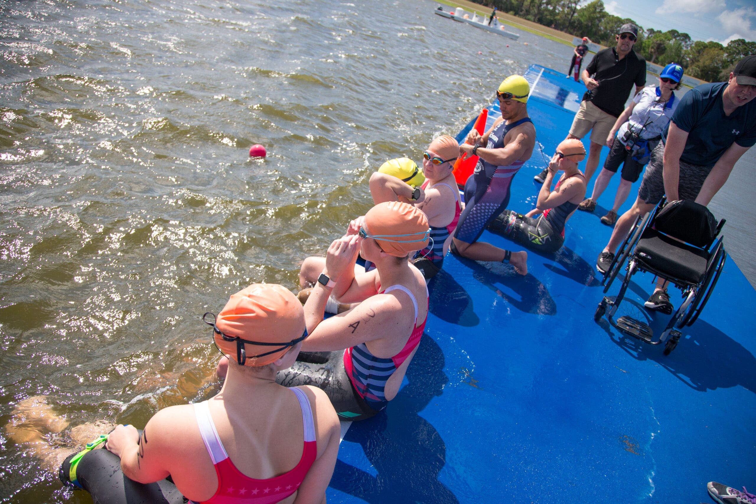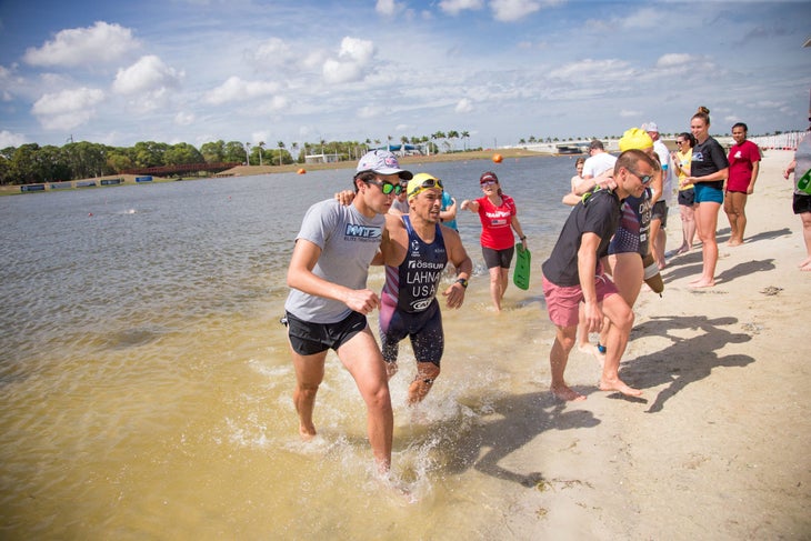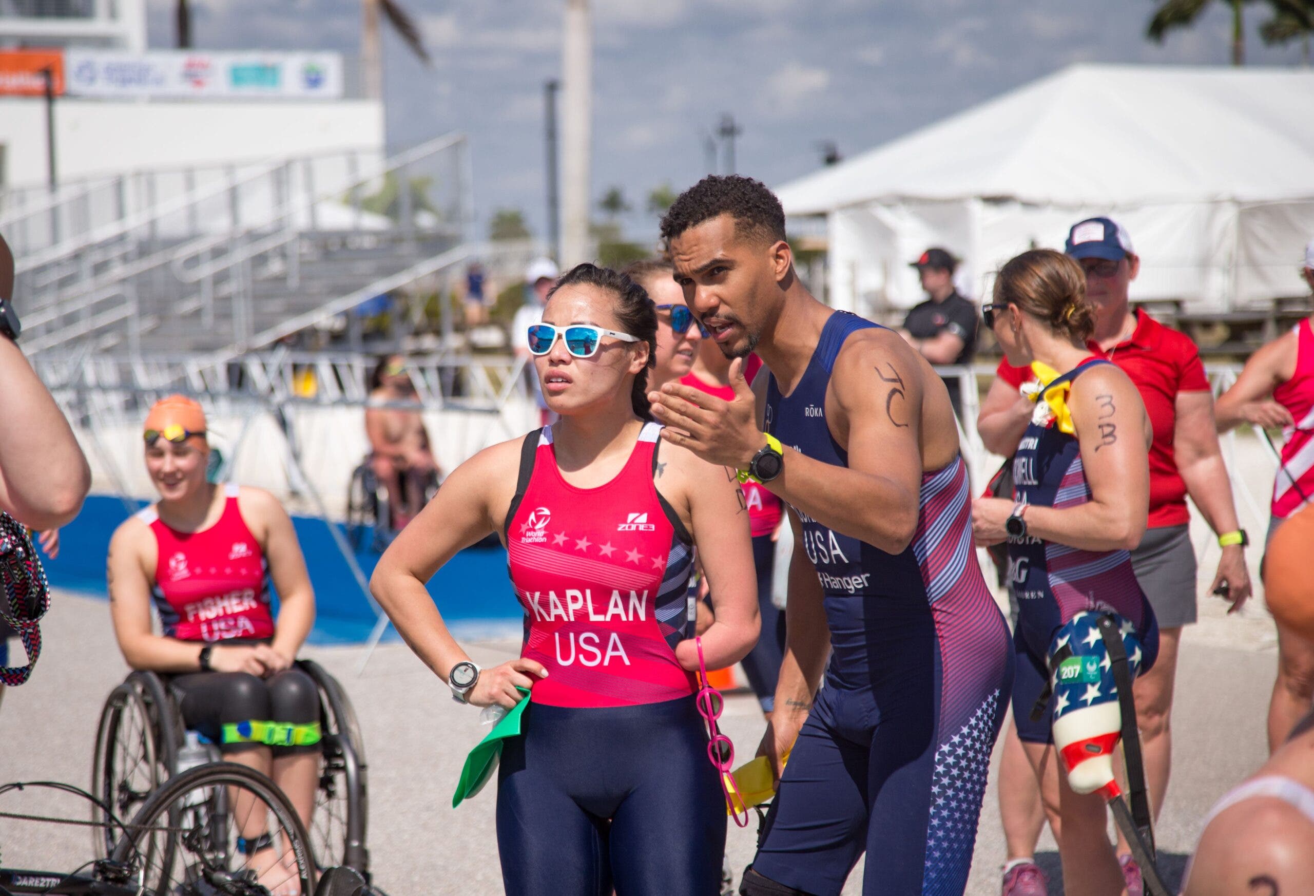 With athletes already coming to Sarasota, Florida for the Americas Triathlon Cup paratriathlon race on Sunday, USAT asked them to help test out the mixed relay format Friday afternoon. There were ultimately four American teams and one Canadian team. And many of the athletes, including most of the U.S. Tokyo Paralympians, were more excited for the test event than for their “real” race—even though Boulet told them that results wouldn’t be posted and timing would only be taken for data collection purposes, not for competition. But, of course, everyone wanted to win this historic race.