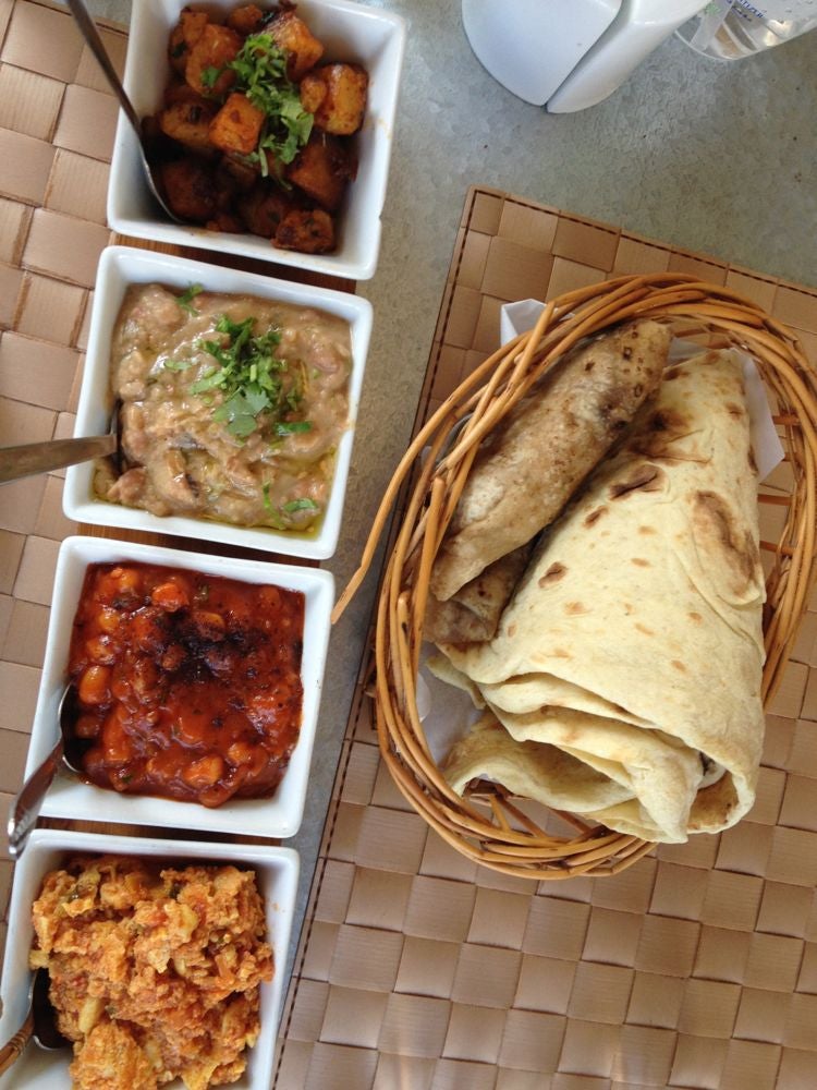 Wired on coffee and kindness, and more than a little amazed by what I’d just experienced, I made my way to Saffron. The feast that ensued could easily count as my last meal–it was simply that good, as well as that large. From my trusty guidebook I knew to go for the traditional Bahraini breakfast–good advice as there was no actual menu, just a waiter ready to hear my order (I did specify vegetarian, an easily accommodated request in Bahrain). When a tray was delivered with four separate bowls of delicious looking fare (potatoes, two separate bean dishes and eggs cooked with tomato) and a basket full of freshly baked flatbread I thought: Wow, that’s a good amount of food! Then, to my surprise, another plate arrived–this one containing two roti stuffed with cheese and mango as well as a kebab sandwich (best described as a falafel slider). Then, a bowl of balaleet–a unique dish of sweetened vermicelli noodles topped with scrambled eggs. Despite my every effort–and believe me, I tried, as I didn’t want to sacrifice a single bite–I couldn’t make it past the halfway point in devouring the mountain of food in front of me. As I stood to pay my bill I was handed a shot glass of a clear yellow liquid and told to down it in one go. It was light and refreshing, a rose water and saffron digestif, the perfect way to end a perfect meal–and indeed, a perfect morning in Bahrain.