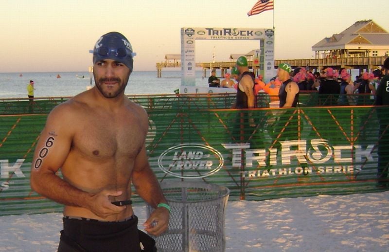 Martinez: I kind of learned by trial and error. I knew the three components that I needed to do, and I knew the distance I needed to get to, so I just trained a little bit more than what was in the race and hoping at race time that I could put it all together. Mainly I just wanted to expand my lungs to make sure that my cardio was up and that I wouldn’t get too tired, and that I could kind of train my muscles to do those different things. The weird thing was when I jumped in the water in Clearwater, the water was a lot colder than I expected, and I didn’t have a triathlon wetsuit. So I brought my surfing wetsuit, my 3/2. And man, that thing was such a pain to swim in. I thought I was going to drown. But I got through it and finished the race, and it was fun.
