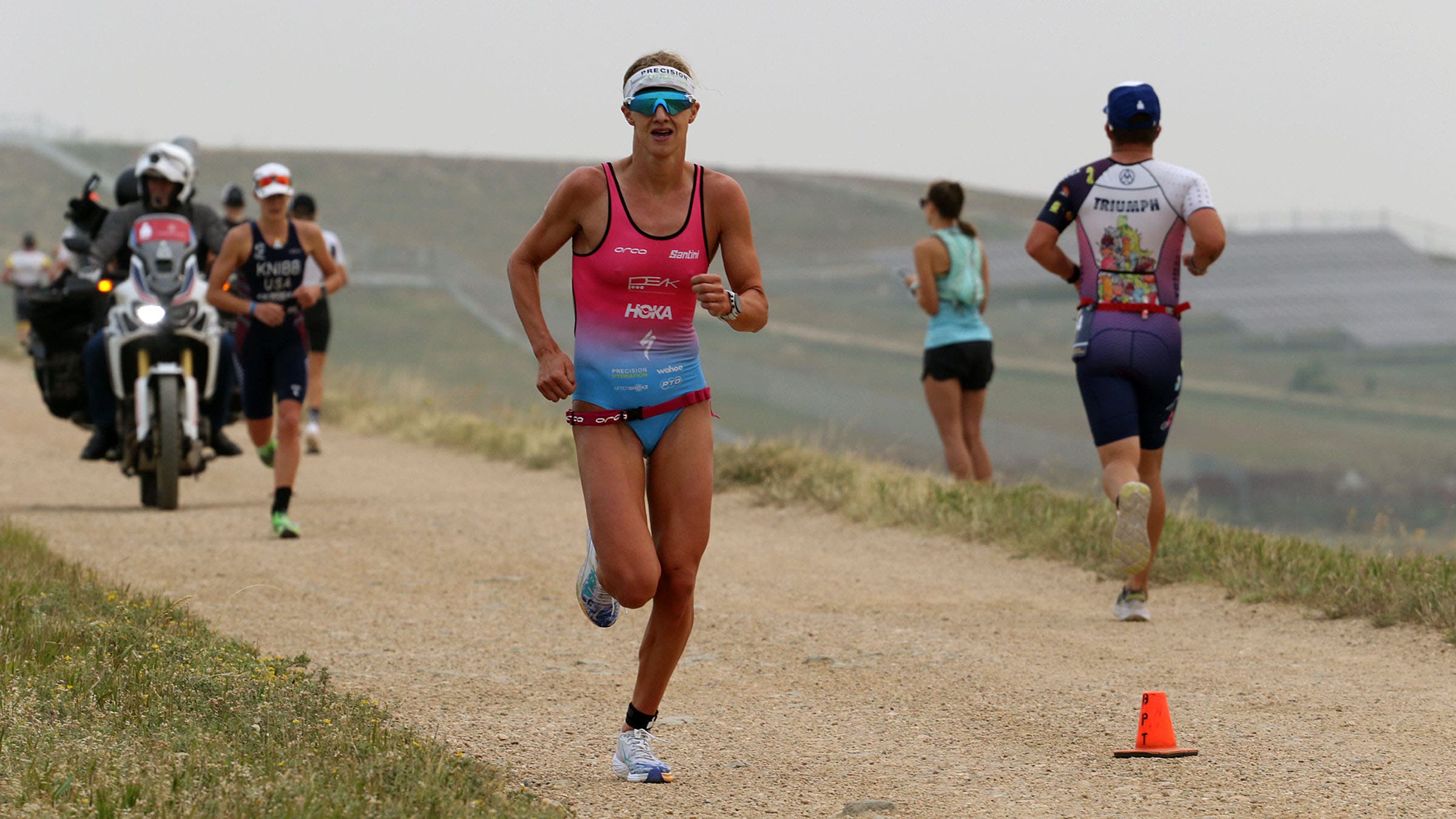 It’s really hard to win a race when you surrender four minutes in the water, but somehow Sam Long keeps clawing himself out of these massive holes. Lionel Sanders could probably swim faster than him on acid. If Long ever learns how to swim, he might become the greatest long-distance triathlete of all-time, because he can do things like ride 56 miles, at altitude, in 1:54:50. That almost completely erased the four-minute swim deficit to Sam Appleton, who rode an impressive 1:58:32 and still saw his lead disappear.