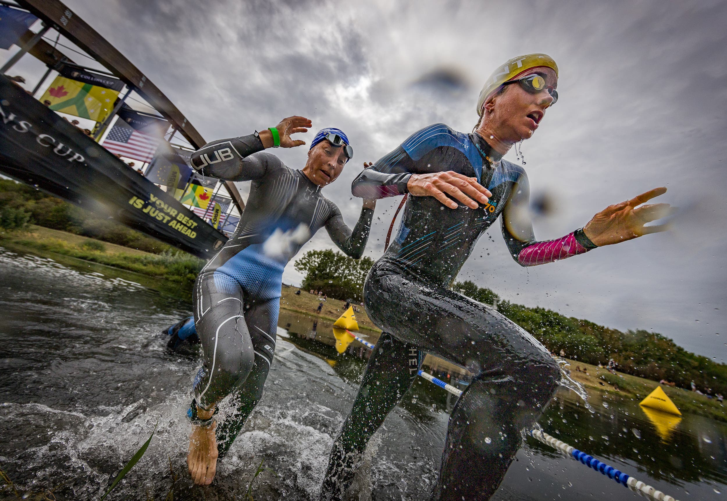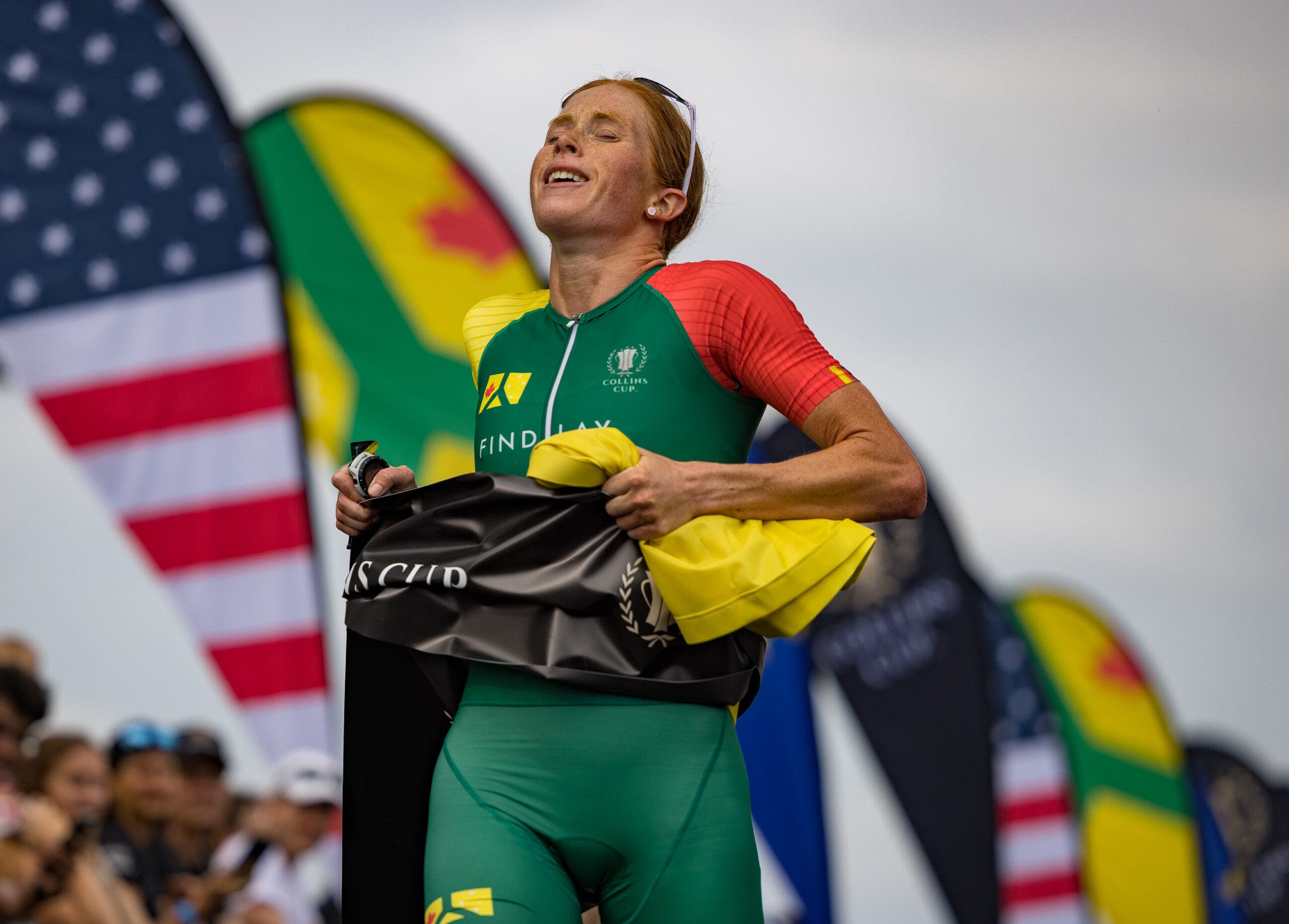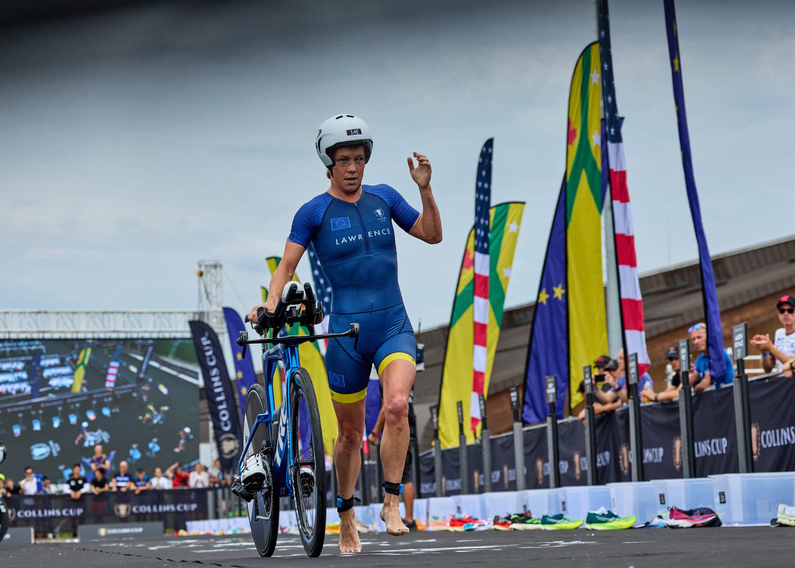Instead of a straightforward gold-silver-bronze format for winners, the Collins Cup uses a point system, wherein the winner of each match scores three points for their team, the runner-up gets two points, and last place earns just one point. But to encourage an all-out effort from start to finish, bonus points are awarded for the margin of victory: a maximum 1.5 points for a six-minute or greater gap over the third-placed triathlete, 1 point for four minutes, and 0.5 points for two minutes.