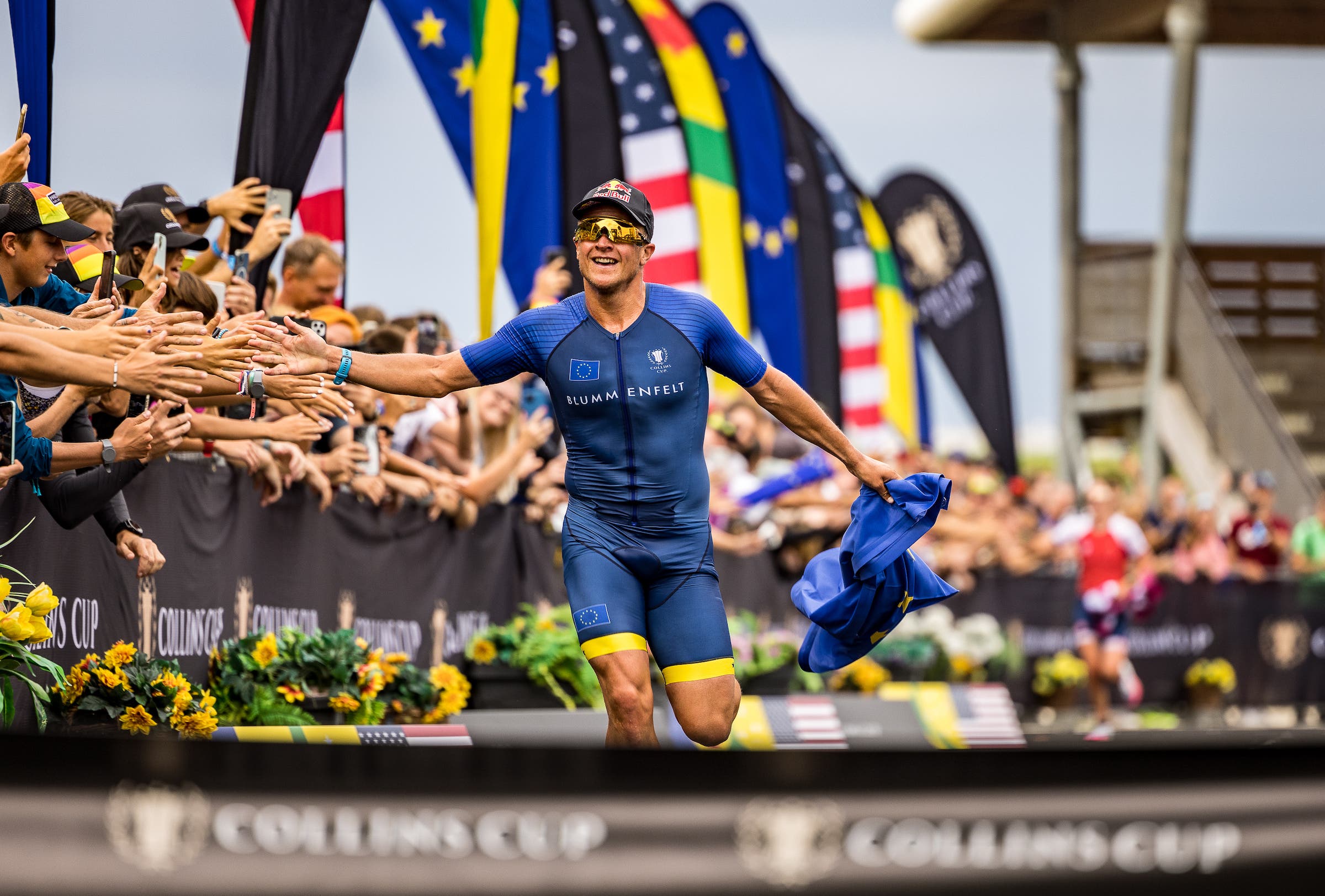 It was a line-to-line win for Baekkegard, who put in a lead of 42 second over Currie and more than 3 minutes on Lieferman on the swim, grew that lead to more than 5 minutes on the bike, and more than seven minutes on the run. His finishing time of 3:13:52 earned the maximum points for Team Europe, adding to an already-impressive point count for the team Collins Cup win.