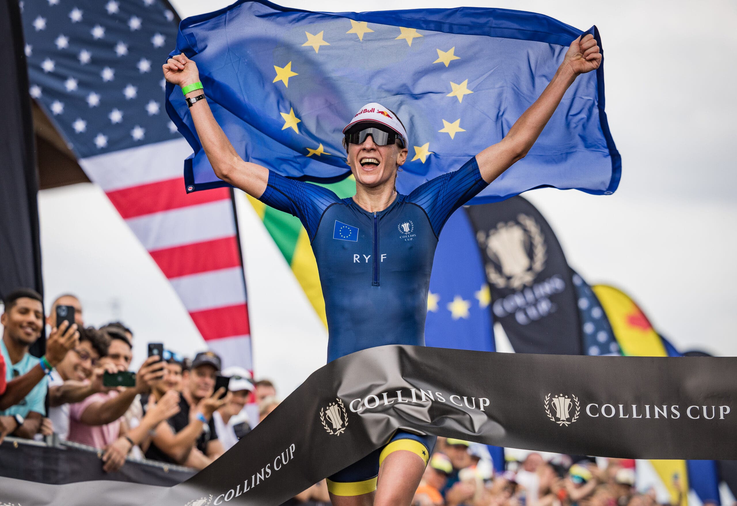 In this highly-anticipated matchup against Olympian Sarah True, reigning Ironman World Champion Ryf and the reigning Olympic champion Duffy – who have not been seen together on a start line since the 2012 Olympic Games – set the tone for the Collins Cup with a thrilling race. Duffy made a statement in the swim, shaking off the draft of True and Ryf early in the swim to exit the water with a 25-second lead. But that lead didn’t last long, as Ryf bridged the gap less than 20K into the bike leg to make the pass into first place. Though Duffy gamely tried to hold on, Ryf cruised to a 1:51:49 bike split and a lead of more than 4 minutes on Duffy and 6 minutes on True out of T2. Ryf’s dominance continued all the way to the finish line, breaking the tape in 3:28:50 to deliver the first win of the day for Team Europe.