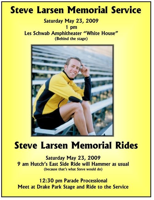 In his former hometown of Davis, Calif., Larsen’s friend Chad DeMasi is organizing a the Steve Larsen Memorial Ride and Fundraising auction, taking place Wednesday at Bistro 33 and Davis Wheelworks. Interested parties can email DeMasi at chad@demasirealestate.com