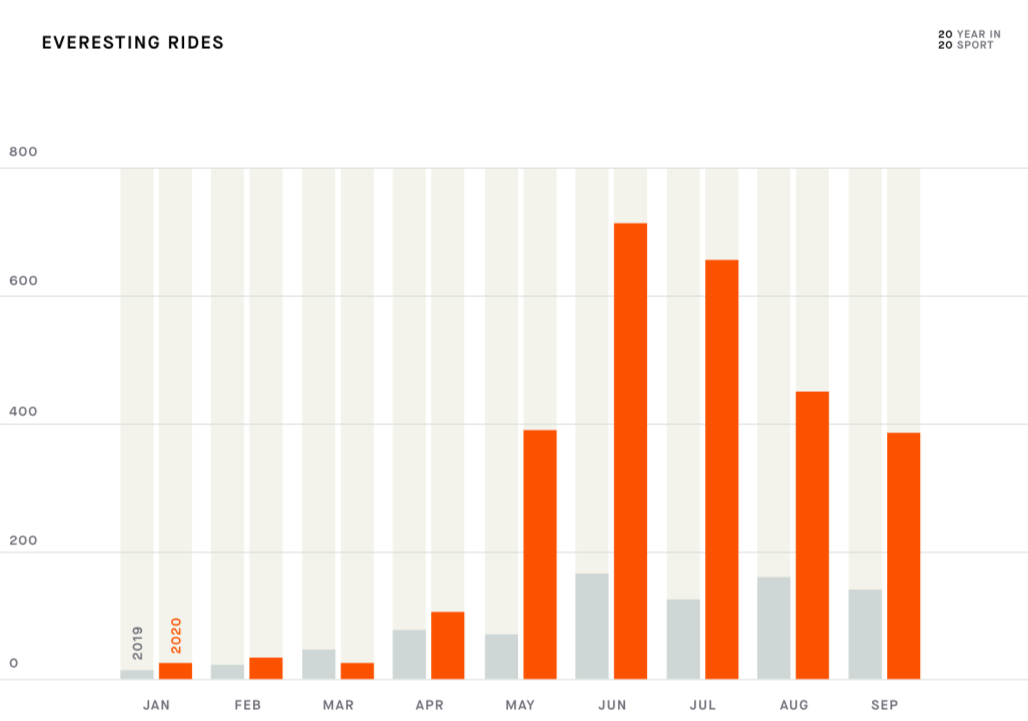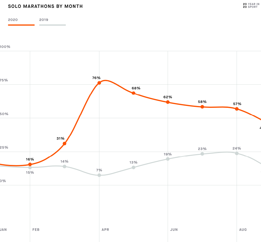 Triathlons, marathons, gran fondos, and even group workouts were pretty much non existent in 2020, but athletes still found a way to keep the competition going. Going after KOMs, QOMs, solo marathons, vertical challenges, and more all showed up in the data.