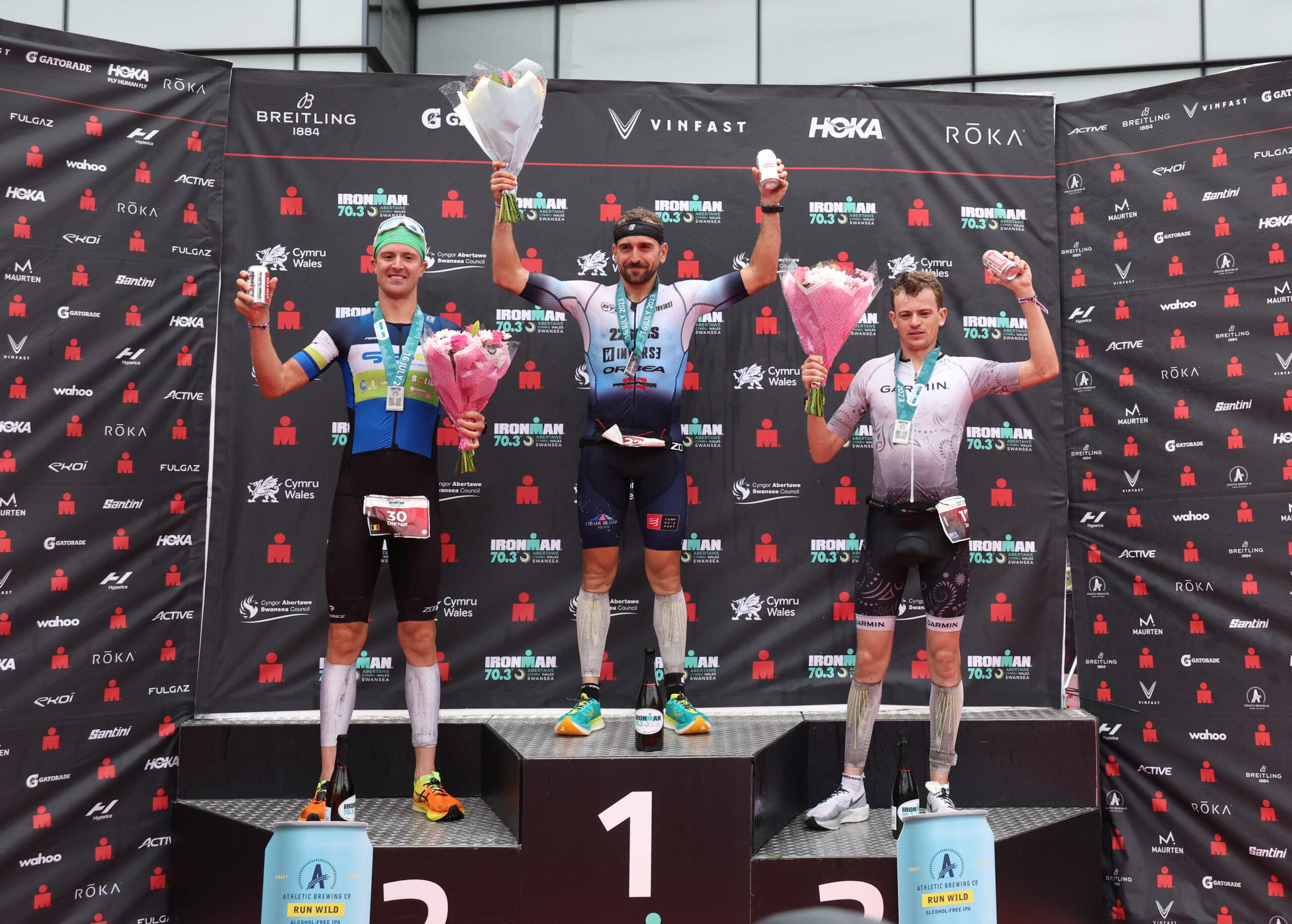 With 10 minutes to spare for Visser starting the run over her fellow pre-race favorites – Germany’s Svenja Thoes and Spain’s Gurutz Frades Larralde – it seemed it would take a record-breaking run to pull off a win. Remarkably, that’s exactly what happened. Home country hero “Guru” Larralde pulled off a course record 2:53 marathon, finishing with an overall time of 8:46:18 – also a course record, because why not?