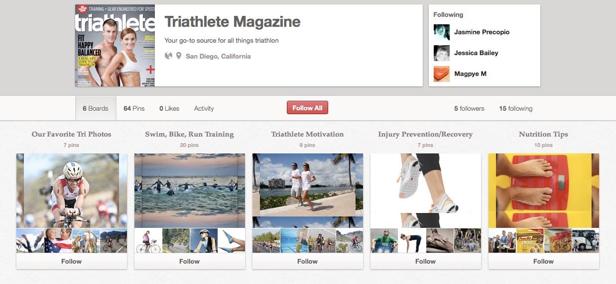 Follow us on Pinterest! Keep track of your favorite motivation, nutrition, training and injury prevention tips and pin your favorite gear or triathlon photos, all from the editors of Triathlete magazine.