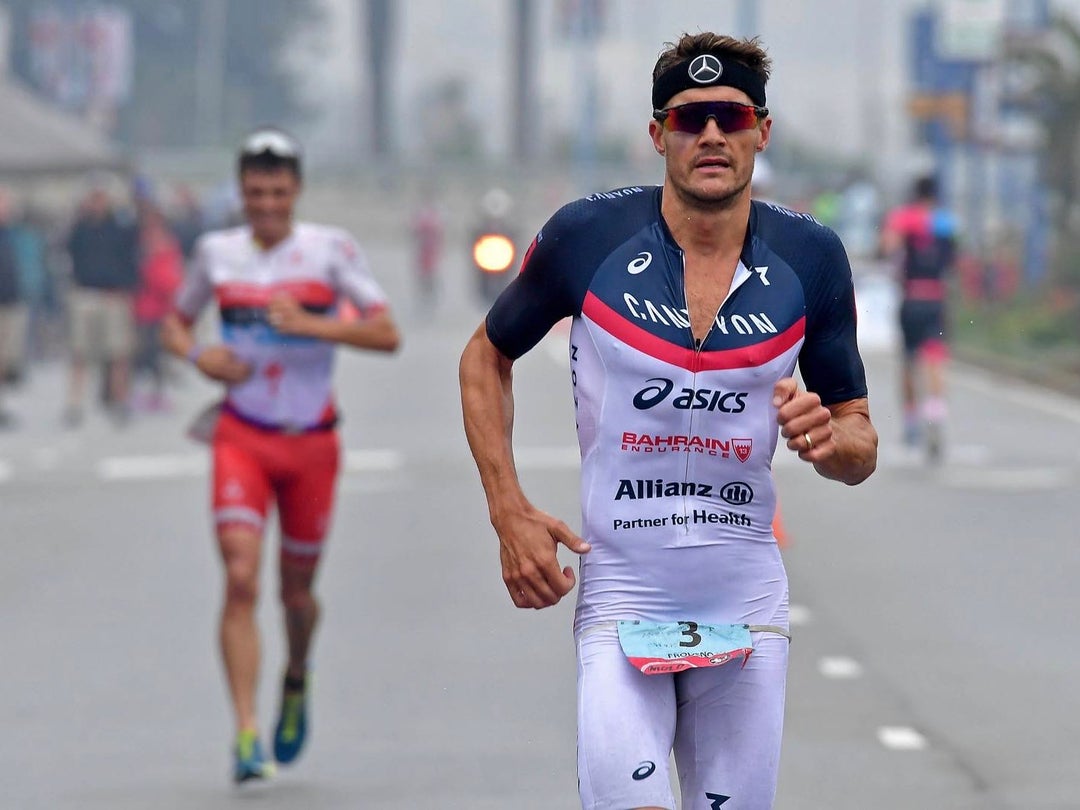 After a fast-paced swim and bike, Sam Appleton (AUS), Jan Frodeno (GER), Ben Kanute (USA), Javier Gomez (ESP), Alistair Brownlee (GBR), and Pieter Heemeryck (BEL) all came into T2 within seconds of each other—setting up an epic fight on the half-marathon. A hard-charging Brownlee closed the gap to the front within minutes of the run, overtaking Frodeno, but his lead was short lived. Gómez, who also came flying out of transition, ran up to leader Frodeno’s shoulder and settled into second position.