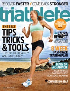 Also inside is Mirinda Carfrae’s first-person account of her second-place finish in Ironman New Zealand, and the week leading up to the race; high-level bike reviews by senior tech editor Aaron Hersh; a latecomer’s training plan for triathletes starting the season a little late; a comprehensive plan for race recovery and the latest therapies; an inside look at a new, revolutionary approach to physical therapy; and profiles of five triathletes who’ve overcome serious injuries and illness to compete.