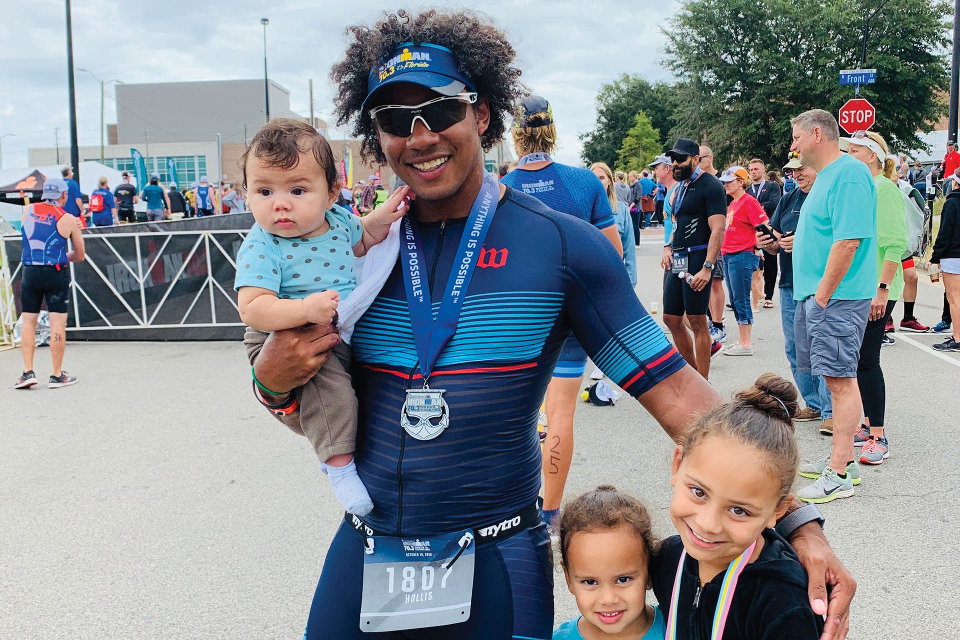 “After playing a couple of years of semi-pro soccer with the MLS, Hollis became a successful businessman. But in 2017 he experienced a vertebral artery dissection, which led to a stroke. He quickly went from being athletic to learning how to simply walk again. He has now completed three 70.3s, retraining his body and learning to live with some of the side effects from the stroke. What’s been amazing to watch is his sheer determination to return not only for himself, but to show his four kids the true meaning of never giving up.”