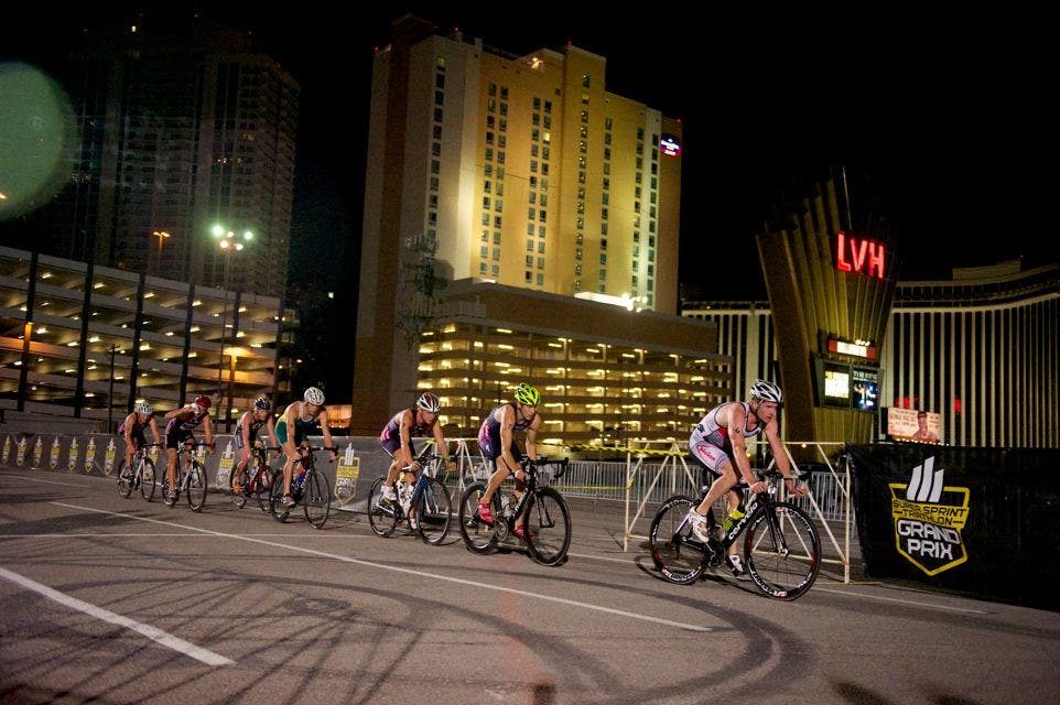 If you’re going to put on a race in Las Vegas, you’ve got to go big – and former pro triathlete Marc Lees did exactly that with his Grand Prix super-sprint event. Under the dazzling lights of the famous Las Vegas Strip, Lees erected a 115,000-gallon swimming pool in a parking lot across from the Las Vegas Convention Center, where the world’s fastest triathletes dove in for two circuits of a 300-meter pool swim, 8-kilometer draft-legal bike, and a 2.5-kilometer run. At the time, it was a novel event – but today, we see it in many forms, including Super League Triathlon and the triathlon mixed relay, which became an official Olympic sport at the 2021 Games. As it turns out, what happens in Vegas doesn’t always stay in Vegas.