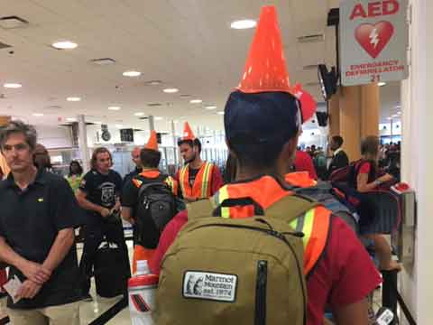 Proving even more that Stanford has a sense of humor, Crowder graciously sent a photo of the men’s team all gussied up as traffic cones on the trip back to Palo Alto.