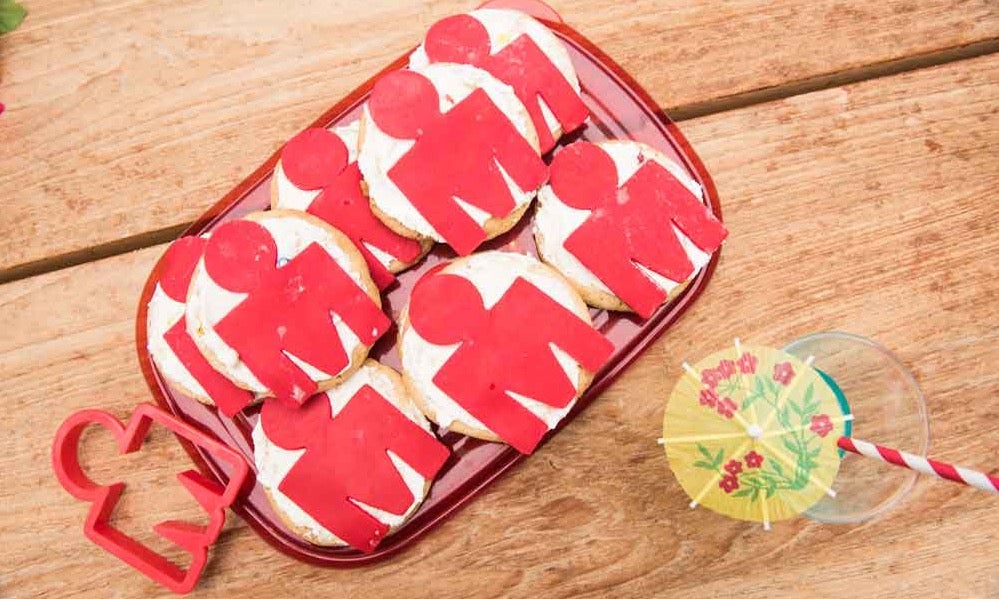 What you need: M-Dot Cookie Cutter ($5.95), giant store-bought sugar or M&M (pictured) cookies, vanilla frosting, red fondant. Roll out the fondant, use the cookie cutter to make M-Dots, place on frosted cookie. Eat.