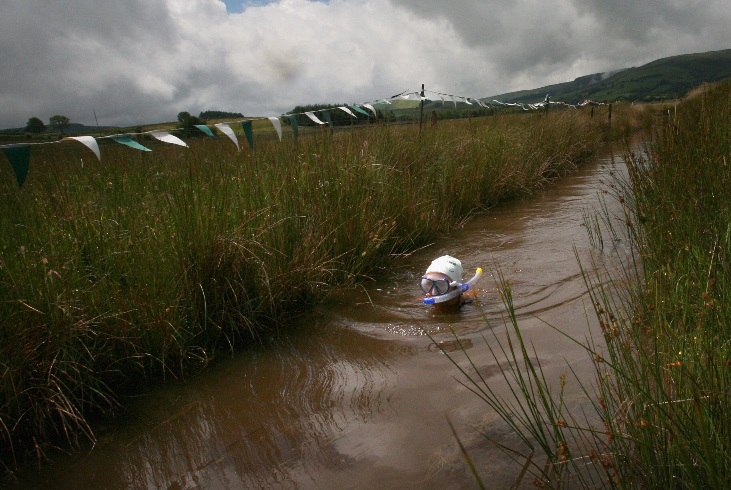 In the obscure sport of bog snorkeling triathlon, athletes run 7.5 miles, don flippers, a mask and fins to snorkel two lengths of a 135-foot long, six-foot deep peat bog trench, and then cycle 19 miles across mountain terrain in the countryside of Wales. In 2018, Smith did just that in record time, crossing the line in 2 hours, 45 minutes, and 30 seconds as the fastest women ever in the event. Smith’s record may soon be under threat: This weekend, the town of Llanwrtyd Wells once again hosts the world bog snorkeling triathlon champs, which also includes a wife-carrying—and a husband-dragging—competition.
