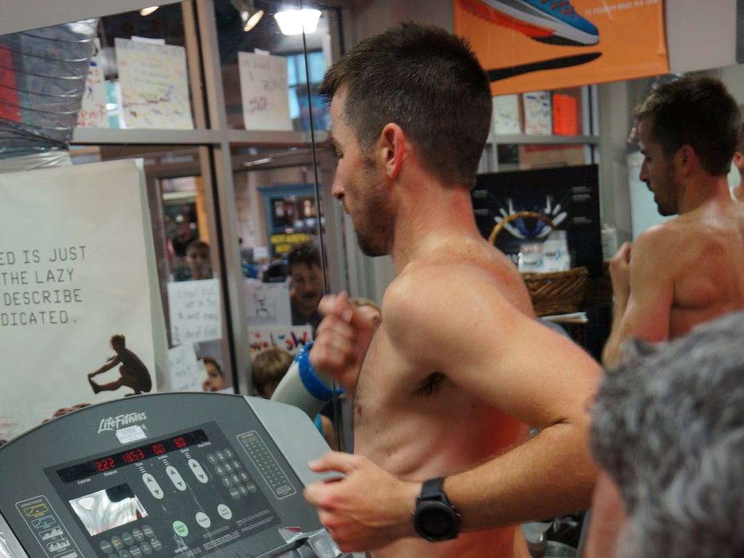 Delzer had two independent volunteers on site taking pics of the treadmill’s display every few minutes. It seemed like overkill at the time, but then disaster struck. “We tripped a breaker about 1-2 hours into my attempt,” he says. The treadmill reset itself, but thanks to the photos, they were able to piece together exactly how many miles he’d run.