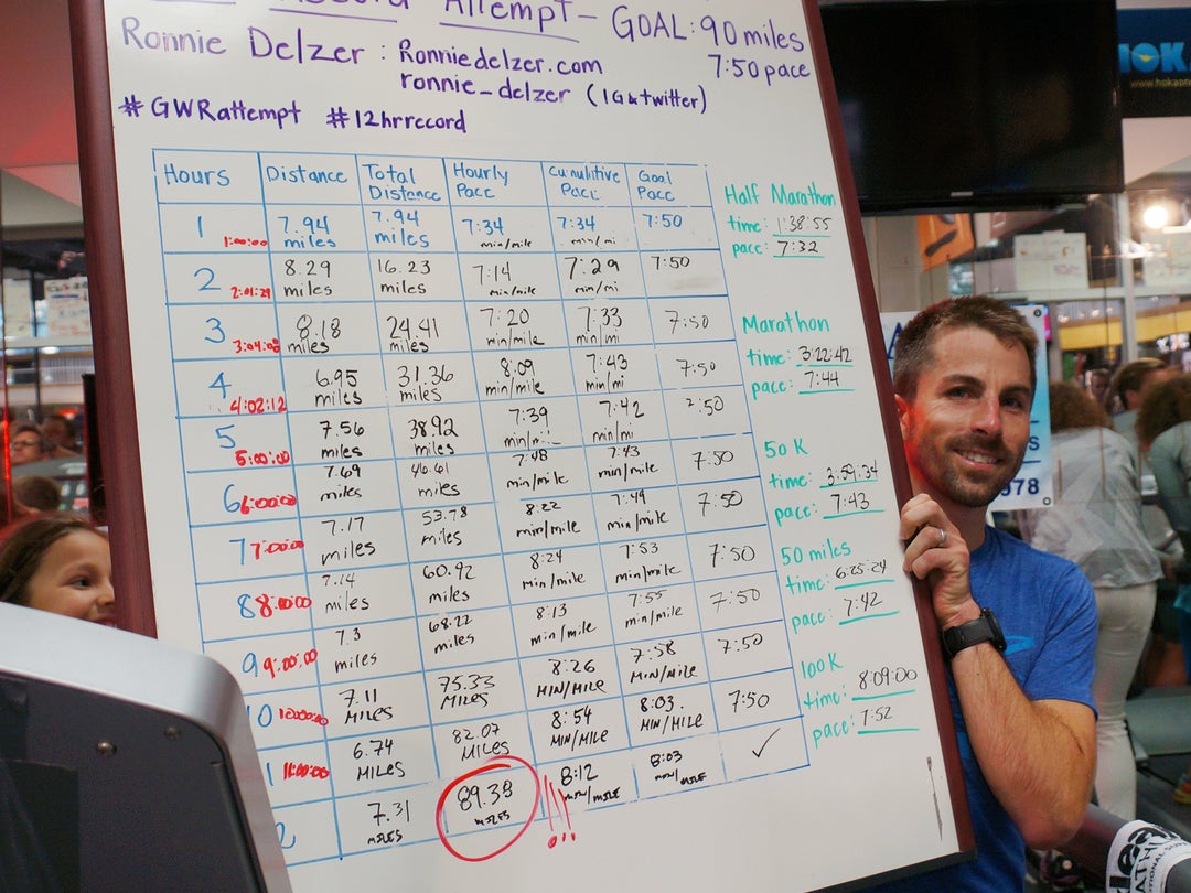 When you decide to go after a record, there are two ways to do it. “You can have someone from Guinness fly out, or you can do the documentation yourself, but it’s very involved,” says Ronnie Delzer, a pro ultrarunner who, in 2016, set the record for most miles run on a treadmill in 12 hours (89.38 miles!). “I actually think the documentation part was harder than the setting-the-record part,” he adds.