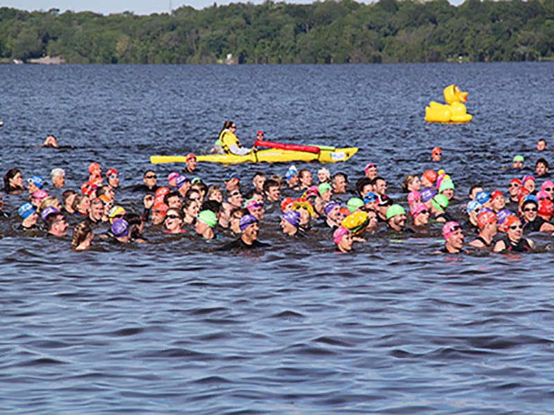 In 2013, 469 triathletes jumped into the water at the Buffalo Triathlon in Buffalo, Minnesota, and set the record for the most people treading water at one time.