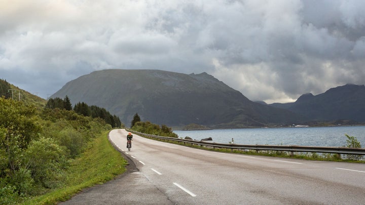 These are the closing lines of Edgar Allen Poe’s short story “A Descent into the Maelström”, a piece set close to one of the rare triathlons held inside the Arctic Circle, the Lofoten Triathlon. The event includes three distances: extreme (4K swim/196K bike/45K run), Olympic (1K swim/50K bike/12K run), and super-sprint (375-meter swim/10K bike/2.5K run) in the cold waters of Svolvær Harbor, on the narrow paved roads and bridges that connect numerous coastal islands and peninsulas, and even through two rugged mountain passes, all before finishers run through a traditional sh rack that serves as the finish line. Don’t worry, the course has no maelströms.