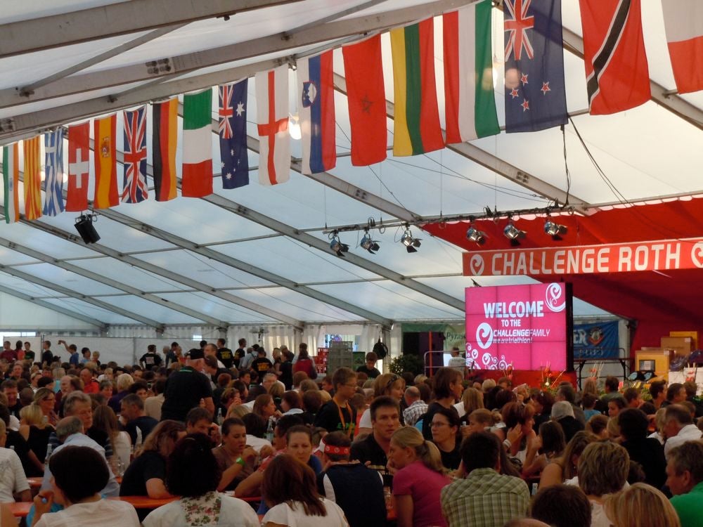 The final official celebration of the 2012 Challenge Roth, the Helferfest (Volunteer’s Party), marked the closure of a thrilling race week in Germany – one in which competitors and triathlon fans from around the world were given a herzlich willkommen (heartfelt welcome) to Roth. As women’s champion Rachel Joyce remarked, it seemed that the whole of Bavaria was out on the course on race day, volunteering and cheering. In fact, over 5,000 volunteers helped make this year’s event run smoothly, and they packed the tent during Monday night’s banquet in their honor.