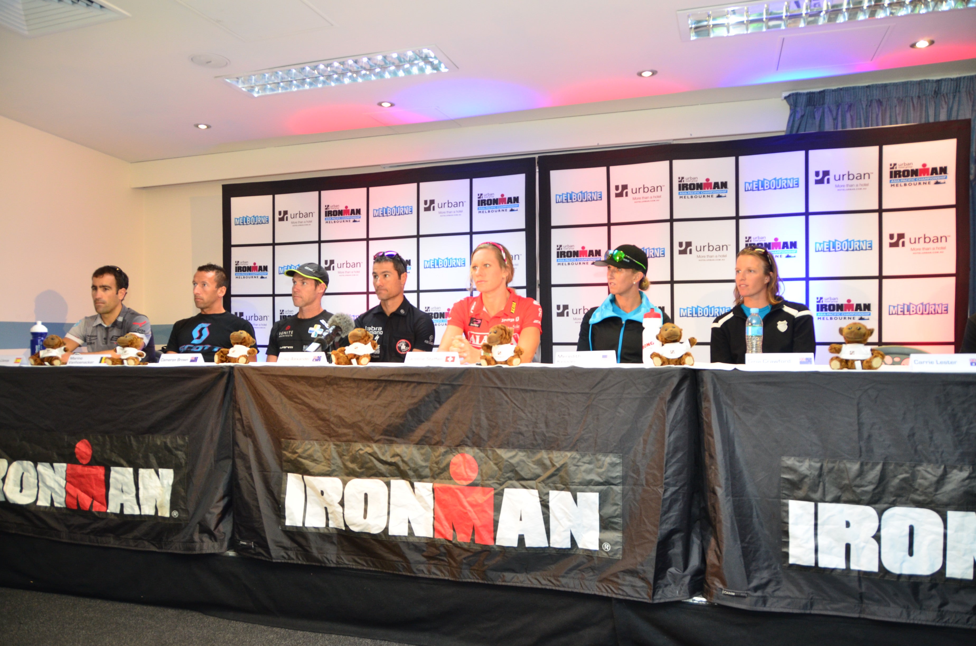Professional triathletes Eneko Llanos (ESP), Marino Vanhoenacker (BEL), Cameron Brown (NZL), Craig Alexander (AUS), Caroline Steffen (SUI), Meredith Kessler (USA) and Gina Crawford (NZL) gathered in Melbourne ahead of Sunday’s Ironman Asia-Pacific Championship. Here are a few quotes from the event: