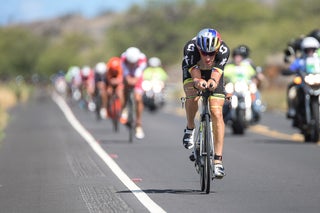 Once on the bike, the men’s race contracts—everyone gets closer again. The slower swimmers try to make up time to the front of the race. “The ideal pace is fast but not out of control,” says Andy Potts of the first half. “It’s inevitable that you get caught up in the pace of the group and roll with it–you need to stay in contact with the group if you want to have a chance at the podium.” Potts says the experience of riding in a fast, big group is something most Kona rookies are not used to: “When the group rolls into an aid station, it can be difficult to get what you need. Bottles get inadvertently dropped, and volunteers get overwhelmed with the speed and amount of athletes coming at them. The athletes that don’t swim as fast have the luxury of executing their plan without distractions. If you are solo, you get what you need and can actually say ‘thank you.'”