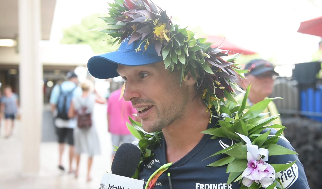 Germany’s Patrick Lange says that during one brief moment on the bike he considered dropping out because he was struggling. Thankfully he stuck it out, coming off of the bike in 11th and running his way to the front of the race to earn his first Ironman world title and establish a new course record of 8:01:40.