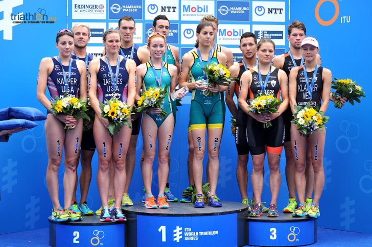 In June, the ITU announced triathlon mixed relays will officially be a part of the Tokyo 2020 Olympics. This past weekend’s mixed relay World Champs in Hamburg gave tri-fans a taste of what’s to come when the event gets its Olympic debut in three years: fast, exciting, heart pounding competition. Just like we like it. Check out the photos and read the race recap from ITU below.