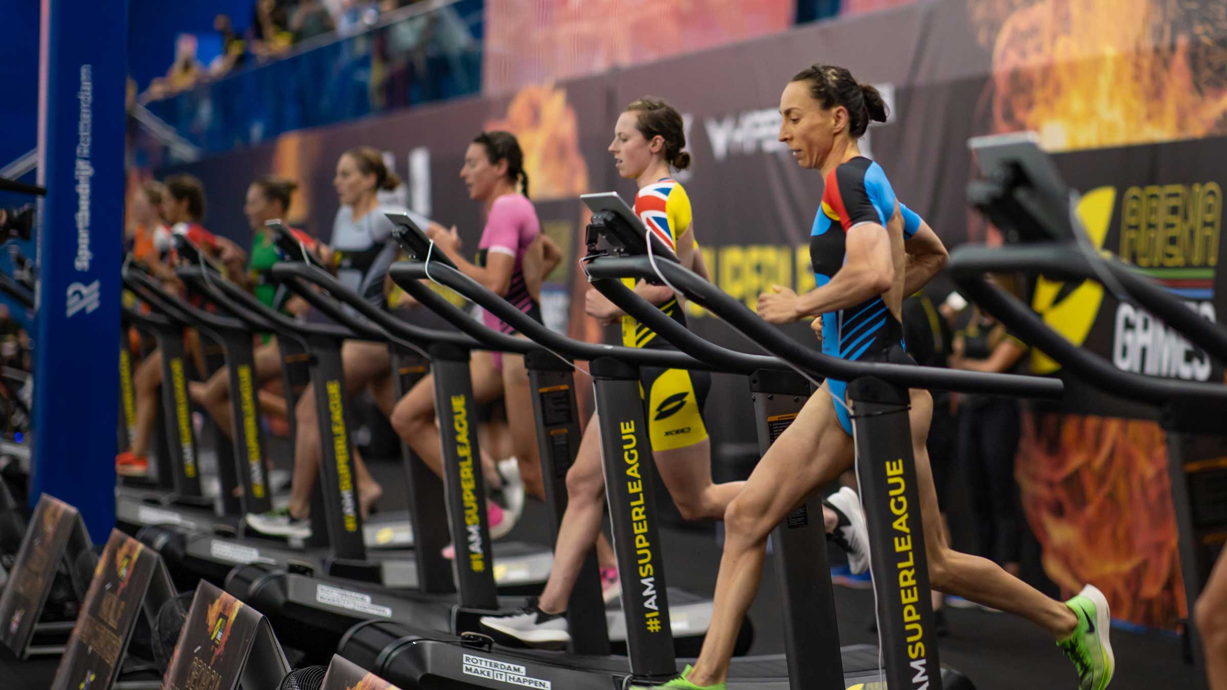Ten men and 10 women competed in a “triple mix” format at a really nice 50-meter pool in Rotterdam, Netherlands. On the pool deck were bikes connected to smart trainers and curved treadmills, both of which were linked to Zwift. Each stage consisted of a 200-meter swim, 4K bike, and 1K run, but the order changed on each of the three stages. Stage one was the traditional swim-bike-run, followed by bike-run-swim on stage two and run-swim-bike on the final stage. Athletes received 10 points for winning a stage, down to 1 point for finishing 10th.