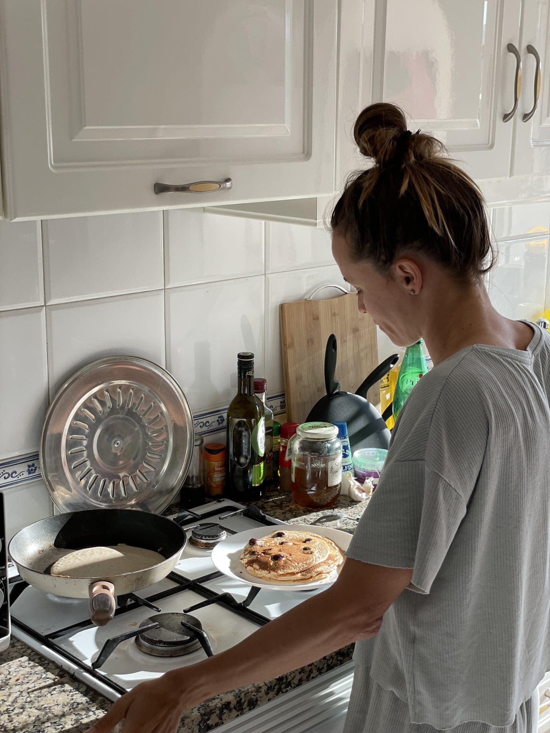 9:45 a.m. – Swim done, so I’m heading back home for a second breakfast. After a hard swim set, I need some protein as well as carbs to replenish, so I scramble some eggs and make blueberry pancakes, as they’re easy to digest ahead of my afternoon training session.