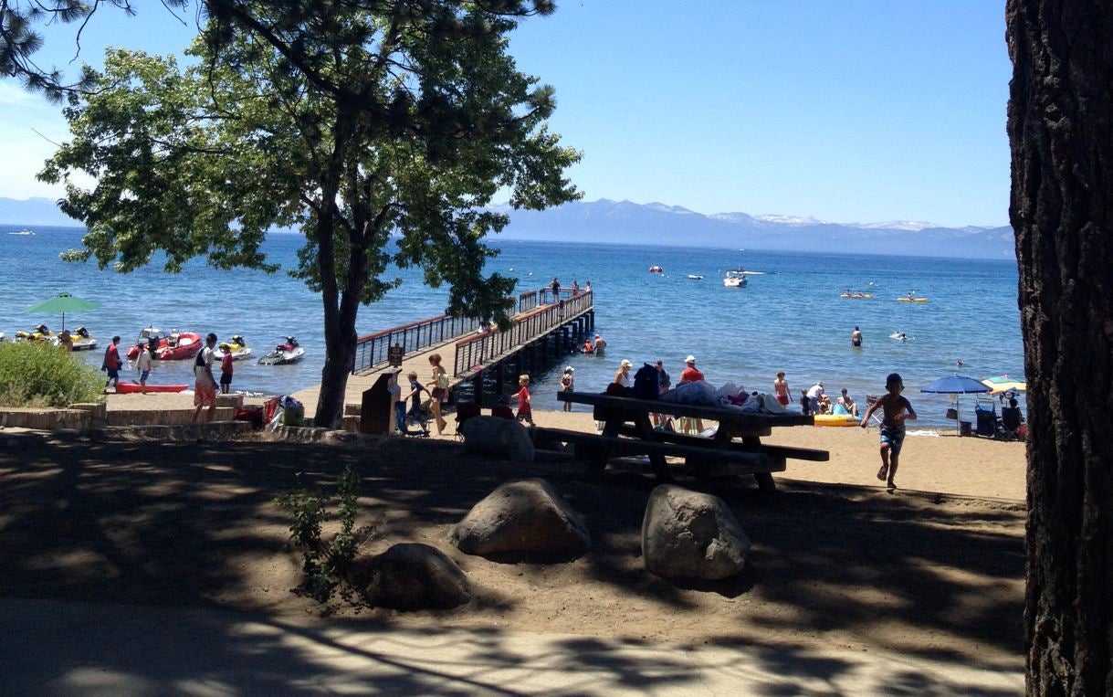 Catch a quick glance at the two-lap swim course at King’s Beach above.