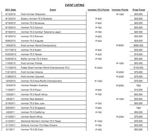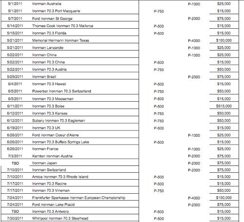 2011 IRONMAN PROFESSIONAL PRIZE MONEY & WORLD CHAMPIONSHIP QUALIFYING RULES – FINAL