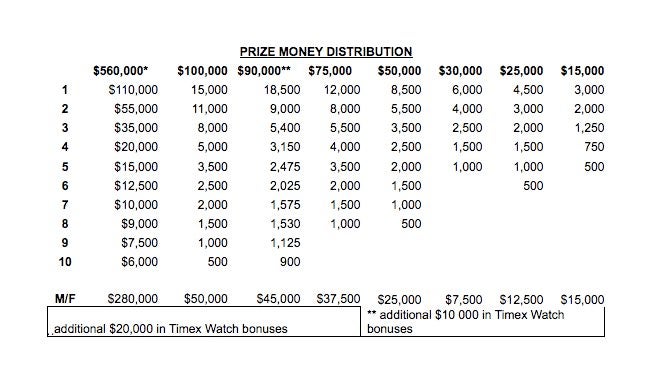 Comment: Please note that the prize money and points allocation of events are mutually exclusive. Whilst our ultimate goal is to have them standardized – due to various of operational, considerations, the allocations have been assigned accordingly. Additionally as new events are announced and details finalized this listing will be updated through direct communication with the Membership and on the new website.