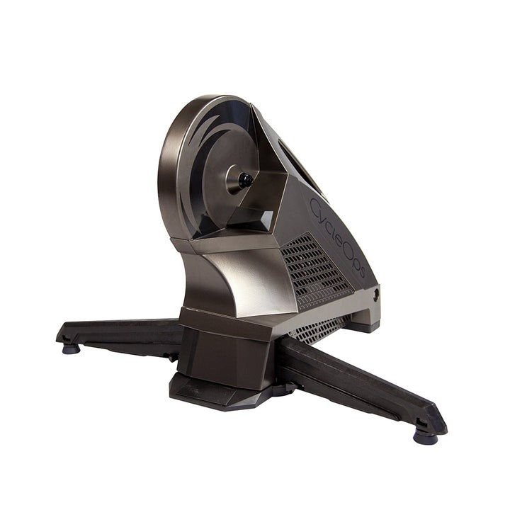 The newest version of the Kickr got even better from the last. It’s definitely the quietest smart trainer we’ve used, for starters. That’s ideal for those of us with kiddos at home who go to bed early. And it’s the most compact smart trainer we’ve tried, so tucking it behind the couch when you’re not using it is actually a feasible option. The well-positioned handle makes it easy to carry this 47-pound unit, too. It’s built like a tank, and while it’s not exactly a sleek looker, it’s unobtrusive enough to tuck in the corner when you’re not using it. The updated version features a rotating axle system so you can use the unit with the Kickr Climb. There’s also improved clearance for disc brakes.