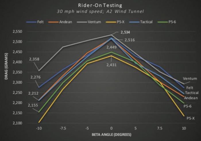Andy Ording, former owner of Zipp and one of the developers of Zipp’s still-sought-after beam bikes—the 2001 and 3001—weighed in on how he thought today’s top bikes stack up. “In a tunnel it is hard to say if the beam bikes have a significant advantage seeing as the double diamonds have all gone to fairing storage compartments for just about everything,” he says. “This provides a convenient body surface and shape expansion, creating fairings that must make a significant improvement in aero performance. Personally, I still imagine that a pure beam bike with a disk wheel would have to perform better in most situations as it allows turbulent air to exhaust so efficiently.” The independent wind tunnel test results seem to reflect Ording’s hypothesis, showing the Cervelo P5x, a beam bike, is slightly faster than the rest (see graphic below).