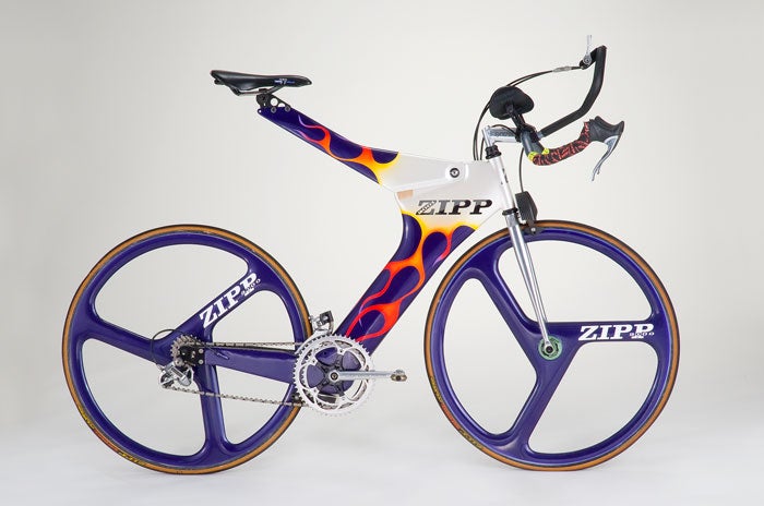 The beam design eliminated the seat tube and seatstays, and traded them for a cantilevered top tube, a massive down-tube, and chainstays. Fewer tubes and surfaces allowed air to pass with less disturbance, which, on paper, made beams more aerodynamic. The beam design also acted as a shock absorber, improving rider comfort. These frames were a (relative) hit—at the 1995 Ironman World Championships, 16 percent of the bikes raced were NDD design (compared to 3 percent in 2017). Market pressures and a change in official international cycling rules ended production of these bikes back in the ‘90s, but in the last few years these radical designs have started to make a comeback. With a few of these new models coming in under $4,500, NDD bikes are no longer strictly luxury class.