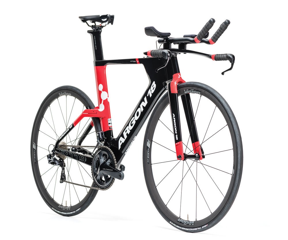 The E-119 is a no-holds-barred, advanced tri/TT bike with an aggressive position (adjustable, but only so far) and lightning-quick handling. While it feels a little more TT than tri right out of the box, there’s still room for most riders to make it work. Boasting an incredible spec, the E-119 handles like a sports car—slicing corners and accelerating on a dime. While this is a good choice for more advanced riders, in both position and mechanical knowhow (see the heavily aero-shrouded componentry), it’s still an all-around bike with a smooth ride quality that would work well for long hours in the saddle at all distance events.