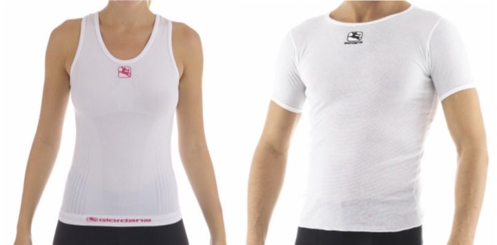 This essential piece of summer cycling clothing has been in the Giordana’s collection the longest, and for good reason. The Dri Release fabric does an excellent job wicking away sweat, even on hot days, reducing that soggy base layer feel after a hard effort. The short sleeve design could be used as a tech shirt when doing brick workouts allowing for faster transition changes coming off the bike—adding value to an already competitively priced garment. The fabric is banded at the collar and base of the sleeves preventing the base layer from bunching up under a jersey. While this is an effective feature, the compression of the arm bands is initially very noticeable.