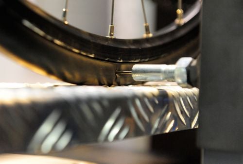 The mechanical tests conducted in the woods of Finland reveal a tremendous amount about a tire’s characteristics, but its performance on race day also depends on its inflation pressure. “The tire can adapt [to the road], and it’s the first thing in contact with the road—it absorbs shock, it deflects little roughness instead of just giving it all to the wheel and to the rider in the end,” says Vorm Walde.
