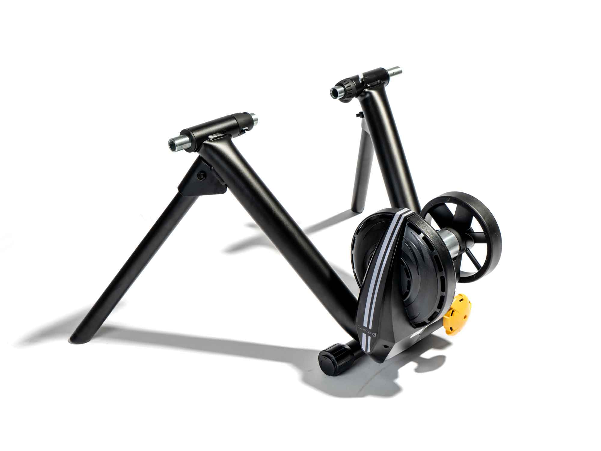 As the only wheel-on smart trainer in the guide, the M2’s magnetically controlled Bluetooth and ANT+ FE-C performs nearly as well as its direct-drive competition. Sturdy construction, easy setup, and a surprisingly quiet system (of course, this depends on the tire used) prove that a tire-contact trainer still has its place in the lineup. The M2 is likely the best choice for those who aren’t planted onto the trainer for weeks on end (think the Southwest) and need to quickly and easily change from trainer to road. As with all tire-contact trainers, the M2 still has the possibility of tire slippage, but there was little—even up around 600-800 watts of sprinting. Noise can also be a factor, due to spinning spokes and tire choice, but the flywheel and spinning drum are shockingly silent.